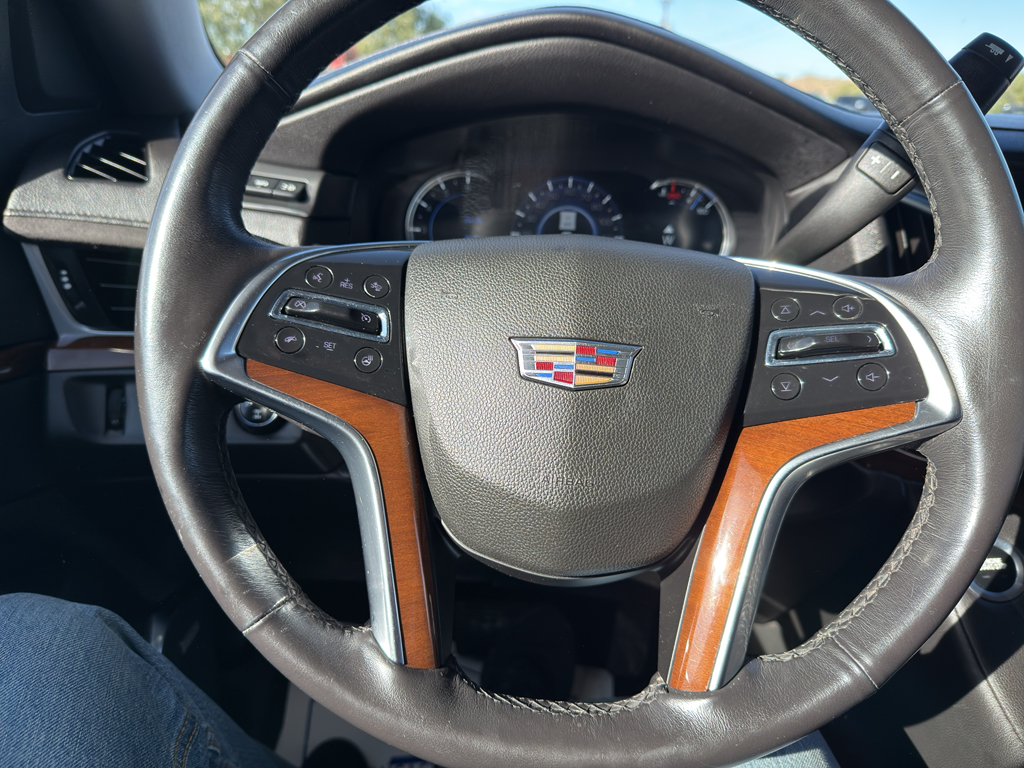 This Cadillac Escalade comes equipped with Android Auto for seamless smartphone integration on the road. The leather seats in the vehicle are a must for buyers looking for comfort, durability, and style. Never get into a cold vehicle again with the remote start feature on it. Engulf yourself with the crystal clear sound of a BOSE sound system in the Cadillac Escalade. Bluetooth technology is built into this model, keeping your hands on the steering wheel and your focus on the road. Lane Keep Assist in this Cadillac Escalade helps maintain safe driving by gently steering to stay within the lane. The installed navigation system will keep you on the right path. The Cadillac Escalade's Lane Departure Warning helps keep you in your lane. Keep your hands warm all winter with a heated steering wheel in it . This vehicle has automated speed control that adjusts to maintain a safe following distance, enhancing highway driving convenience.