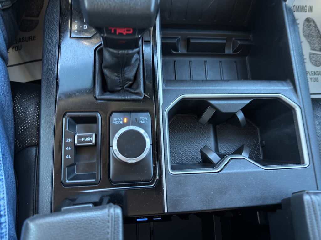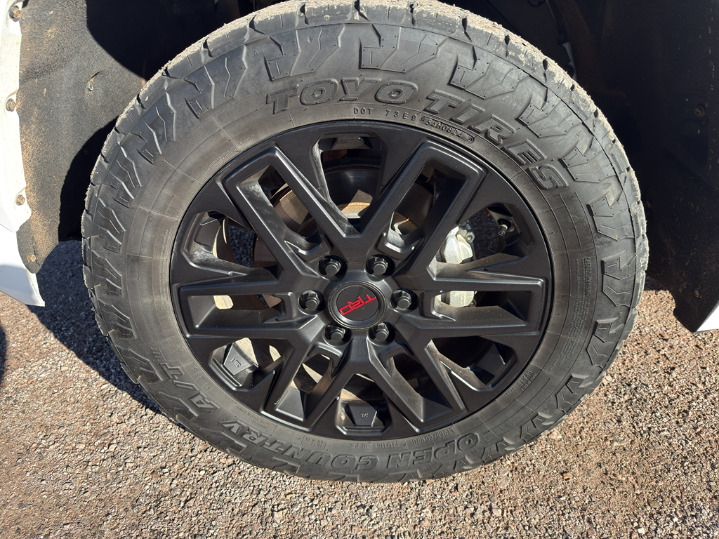 TRD Sport Premium Package - Includes 20-inch TRD alloy wheels. TRD grille. "TRD SPORT" bed-side decal. lowered sport suspension with Bilstein shocks. red TRD engine start button. TRD leather shift knob. aluminum sport pedals. SofTex-trimmed seats. 8-way power adjustable front seats with 2-way power lumbar. heated front seats. dual zone automatic climate control. and color-keyed outer door handles: 20" Black Alloy Wheels; SofTex Seat Trim. All Weather Floor Liners. Leather Steering Wheel. Stainless Steel Door Edge Guards. Black Tailgate Insert. **Equipment listed is based on original vehicle build and subject to change. Please confirm the accuracy of the included equipment by calling the dealer prior to purchase.**