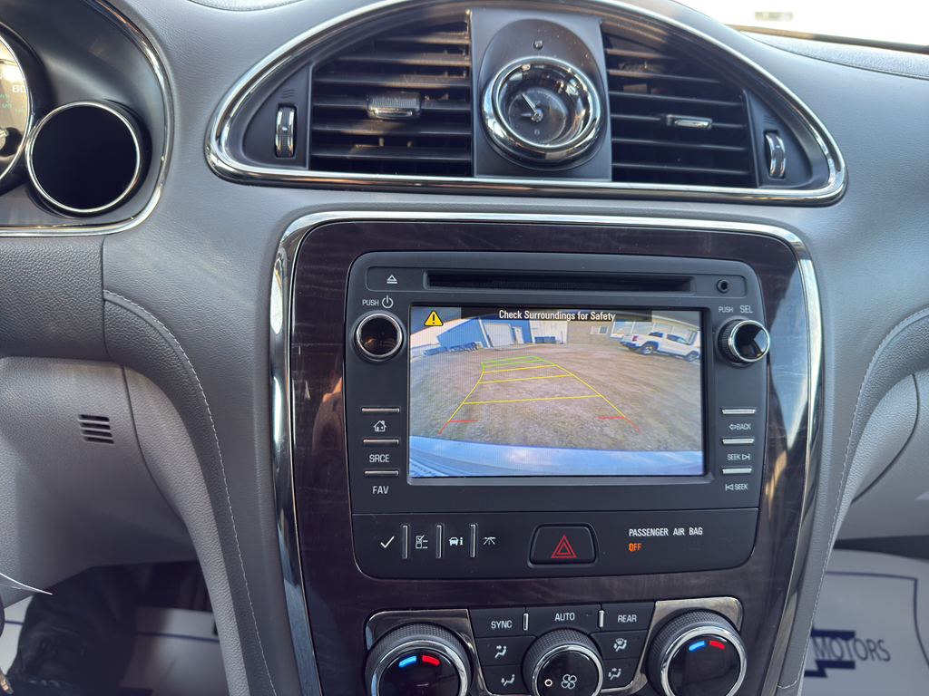 This Buick Enclave keeps you comfortable with Auto Climate. The state of the art park assist system will guide you easily into any spot. See the road and the surrounding area better with the Xenon HID headlamps on this model. Once you have these you'll want them on all your cars. Start this unit from inside with remote start. The leather seats in this model are a must for buyers looking for comfort, durability, and style. The HID headlamps on the Buick Enclave light your way like never before. Keep your hands warm all winter with a heated steering wheel in it . See what's behind you with the back up camera on this 2015 Buick Enclave . Bluetooth technology is built into this 2015 Buick Enclave , keeping your hands on the steering wheel and your focus on the road. Set the temperature exactly where you are most comfortable in this 2015 Buick Enclave . The fan speed and temperature will automatically adjust to maintain your preferred zone climate.