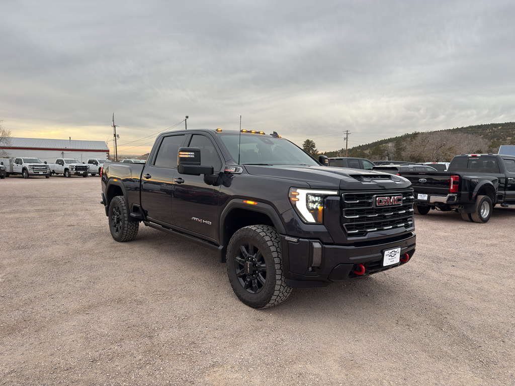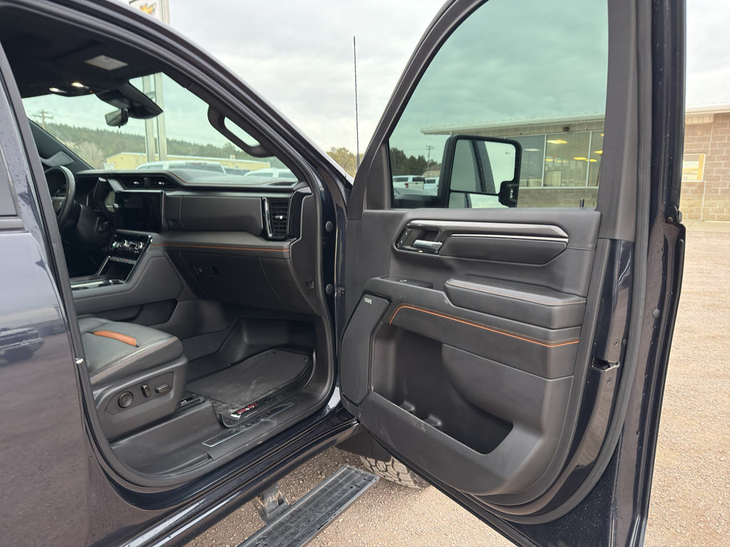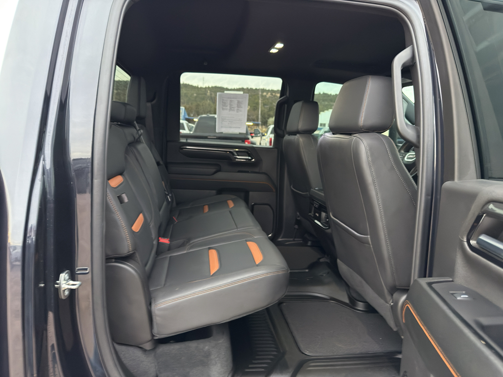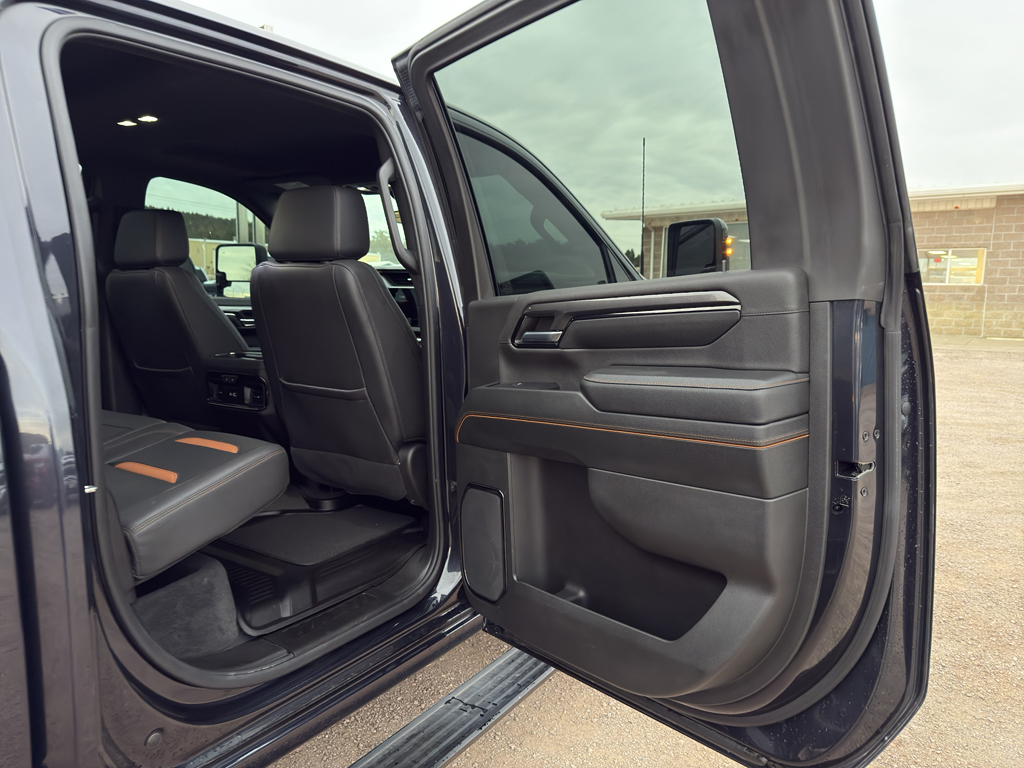 Preferred Equipment Group 4SB: LED Cargo Area Lighting; Trailer Side Blind Zone Alert; SiriusXM with 360L; Remote Vehicle Starter System; Safety Alert Seat; Ultrasonic Front and Rear Park Assist; Trailer Cam Provisions and Trailer Viewing Software; Electric Rear-Window Defogger; Floor-Mounted Center Console; Gloss Black Header Grille and Grille Insert Bars; Unauthorized Entry Theft-Deterrent System; Bed View Camera with Two Trailer Camera Provisions; Front Rain-Sensing Wipers; Sierra HD Pro Safety; Wireless Phone Projection; 2 USB Ports; Rear Cross Traffic Alert; 120-Volt Instrument Panel Power Outlet; 2 Charge/data USB Ports Inside Center Console; Heated Driver and Front Outboard Passenger Seats; Wireless Charging; X31 Off-Road Package; Front Premium Floor Liners with Removable Carpet Insert; Steering Wheel Audio Controls; Rear Premium Floor Liners with Removable Carpet Insert; 2 Charge-Only Rear USB Ports; GMC Connected Access Capable; OnStar and GMC Connected Services Capable; 120-Volt Bed Mounted Power Outlet; Heated 2nd Row Outboard Seats; Power Front Passenger Windows with Express Up/down; Bose Premium 7-Speaker Sound System; 2-Speed Active Transfer Case; Deep-Tinted Glass; 6.6L V8 with Direct Injection and Variable Valve Timing Engine; Spray-On Bedliner with AT4 Logo; Integrated Trailer Brake Controller; HD Surround Vision; Ventilated Driver and Front Passenger Seats; Manual Tilt-Wheel/telescoping Steering Column; Keyless Open and Start; ProGrade Trailering System; Push Button Start; Rear Wheelhouse Liners