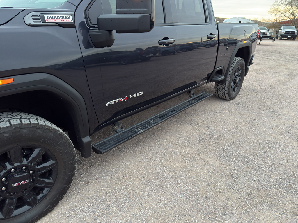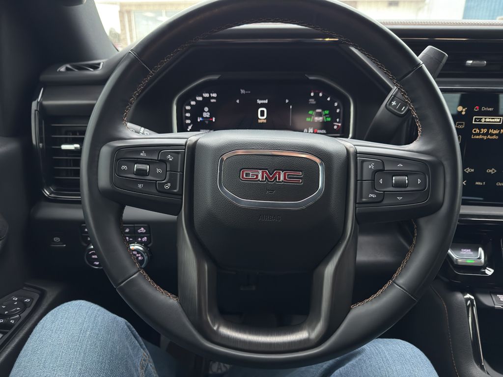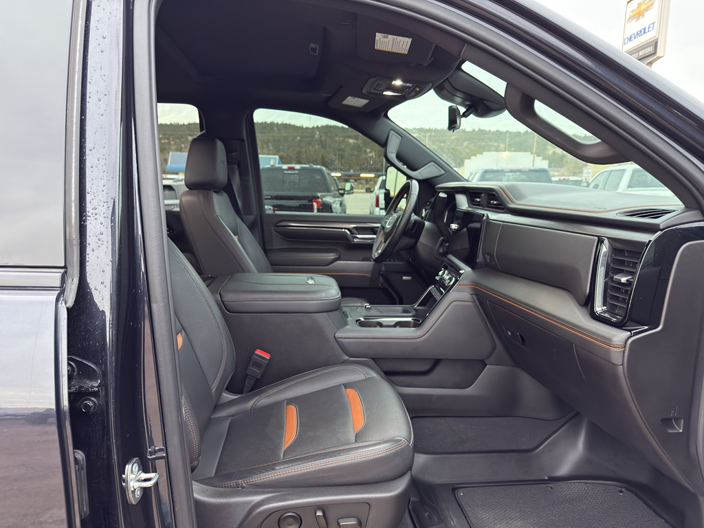Packages AT4 Preferred Package: Power Sliding Rear Window with Defogger; LED Smoked Amber Roof Marker Lamps; Universal Home Remote; Adaptive Cruise Control. Preferred Equipment Group 4SB: LED Cargo Area Lighting; Trailer Side Blind Zone Alert; SiriusXM with 360L; Remote Vehicle Starter System; Safety Alert Seat; Ultrasonic Front and Rear Park Assist; Trailer Cam Provisions and Trailer Viewing Software; Electric Rear-Window Defogger; Floor-Mounted Center Console; Gloss Black Header Grille and Grille Insert Bars; Unauthorized Entry Theft-Deterrent System; Bed View Camera with Two Trailer Camera Provisions; Front Rain-Sensing Wipers; Sierra HD Pro Safety; Wireless Phone Projection; 2 USB Ports; Rear Cross Traffic Alert; 120-Volt Instrument Panel Power Outlet; 2 Charge/data USB Ports Inside Center Console; Heated Driver and Front Outboard Passenger Seats; Wireless Charging; X31 Off-Road Package; Front Premium Floor Liners with Removable Carpet Insert; Steering Wheel Audio Controls; Rear Premium Floor Liners with Removable Carpet Insert; 2 Charge-Only Rear USB Ports; GMC Connected Access Capable; OnStar and GMC Connected Services Capable; 120-Volt Bed Mounted Power Outlet; Heated 2nd Row Outboard Seats; Power Front Passenger Windows with Express Up/down; Bose Premium 7-Speaker Sound System; 2-Speed Active Transfer Case; Deep-Tinted Glass; 6.6L V8 with Direct Injection and Variable Valve Timing Engine; Spray-On Bedliner with AT4 Logo; Integrated Trailer Brake Controller; HD Surround Vision; Ventilated Driver and Front Passenger Seats; Manual Tilt-Wheel/telescoping Steering Column; Keyless Open and Start; ProGrade Trailering System; Push Button Start; Rear Wheelhouse Liners. 20" Aluminum High Gloss Black Wheels. Power Sunroof. Black Sport Step. Onyx Black. Rear Underseat Storage. LED Smoked Amber Roof Marker Lamps. 5th Wheel and Gooseneck Trailer Wiring Provisions. **Equipment listed is based on original vehicle build and subject to change. Please confirm the accuracy of the included equipment by calling the dealer prior to purchase.**