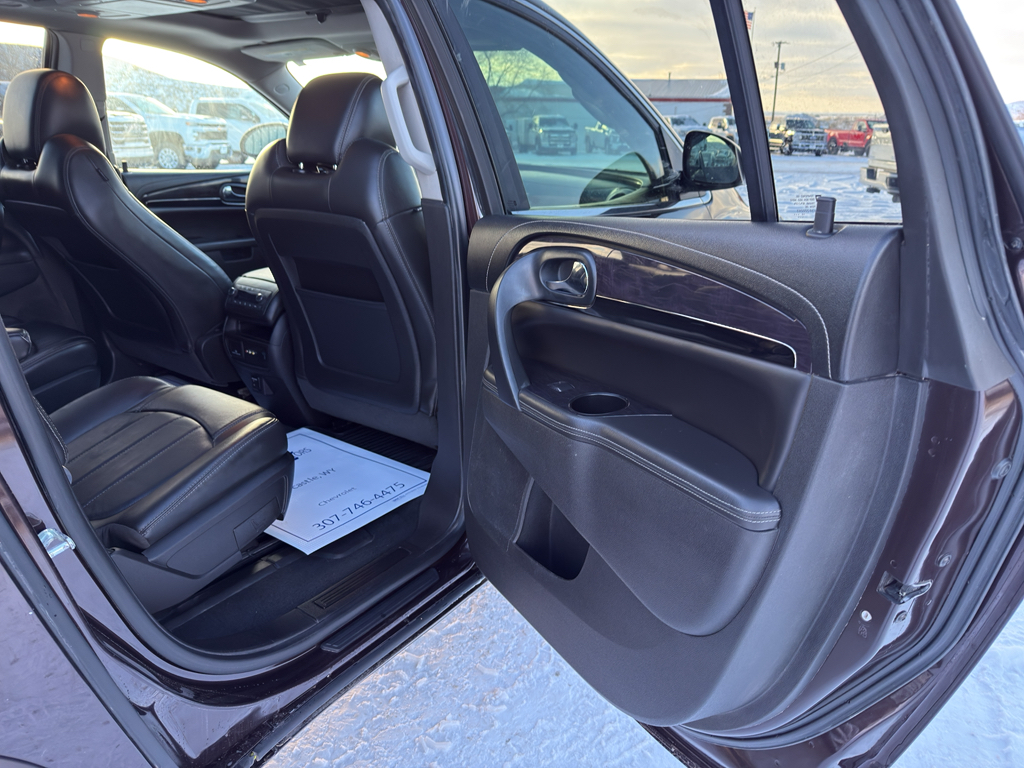 Packages Preferred Equipment Group 1SN: Bose Sound System; Forward Collision Alert and Lane Departure Warning; NavTraffic; Premium Package. Experience Buick Package: 20" Bright-Machined Aluminum Wheels with Blade Silver Pockets; Power Tilt-Sliding Moonroof. Buick Interior Protection Package: All-Weather Cargo Mat; 3rd Row All-Weather Floor Mats; All-Weather Floor Mats. 4500lbs Trailering Package: Trailer Hitch; Heavy-Duty Cooling System. Power Tilt-Sliding Moonroof. Color Touch AM/FM/CD/DVD/navigation Radio with IntelliLink. 20" Bright-Machined Aluminum Wheels with Blade Silver Pockets. Dark Chocolate Metallic. All-Weather Floor Mats. 3rd Row All-Weather Floor Mats. All-Weather Cargo Mat. Front License Plate Mounting Bracket. **Equipment listed is based on original vehicle build and subject to change. Please confirm the accuracy of the included equipment by calling the dealer prior to purchase.**