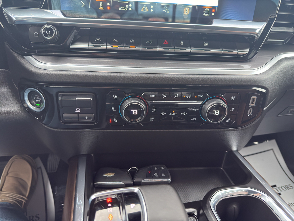 Preferred Equipment Group 3LZ: Trailer Side Blind Zone Alert; Chrome Assist Steps; Driver Memory; Perforated Leather Seat Trim; SiriusXM with 360L; Power Sliding Rear Window with Rear Defogger; Safety Alert Seat; Ultrasonic Front and Rear Park Assist; Trailer Camera Provisions; Electric Rear-Window Defogger; Theft Deterrent System (unauthorized Entry); 20" X 9" Painted Aluminum Wheels; Front Rain-Sensing Wipers; Heated Steering Wheel; 120-Volt Interior Power Outlet; Heated Driver and Front Outboard Passenger Seats; Front Bucket Seats; Color-Keyed Carpeting Floor Covering; OnStar and Chevrolet Connected Services Capable; 2nd Row Heated Outboard Seats; Power Front Passenger Windows with Express Up/down; Front Carpeted Floor Mats; Rear Carpeted Floor Mats; 12.3" Multicolor Reconfigurable Digital Display; Body-Color Painted Mirror Caps; Power Rear Windows with Express Down; Integrated Trailer Brake Controller; HD Surround Vision; Ventilated Driver and Front Passenger Seats; Power Tilt and Telescoping Steering Column; 275/60R20SL AT BW Tires; Keyless Open and Start; Perimeter Lighting; Auto-Dimming Inside Rearview Mirror; LED Cargo Area Lighting; Bluetooth For Phone; Remote Vehicle Starter System; In-Vehicle Trailering System App; Floor Mounted Center Console; Bed View Camera; Rear Cross Traffic Braking; Electrical Steering Column Lock; Trailering Package; Up-Level Rear Seat with Storage Package; Standard Tailgate; 2 USB Data Ports; Front LED Fog Lamps; Chrome Recovery Hooks; Steering Wheel Audio Controls; Dual Rear USB Ports (charge Only); Adaptive Cruise Control; Universal Home Remote; 2-Speed Transfer Case; Deep-Tinted Glass; 10-Way Power Driver Seat with Lumbar; Chevytec Spray-On Black Bedliner; Dual Exhaust with Polished Outlets; Chevy Safety Assist; Hitch Guidance with Hitch View; Power Front Windows with Driver Express Up/down; Wrapped Steering Wheel; Power Tailgate; Rear Pedestrian Alert; 10-Way Power Passenger Seat Adjuster with Lumbar; Outside Heated Power-Adjustable Mirrors; Rear Wheelhouse Liners; Auto-Locking Rear Differential