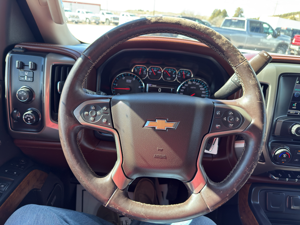 Preferred Equipment Group 3LZ: EZ-Lift and Lower Tailgate; Chrome Door Handles; Rear Vision Camera with Dynamic Guide Lines; Rear 60/40 Folding Bench Seat (folds Up); Remote Vehicle Starter System; Power Sliding Rear Window with Defogger; 6" Rectangular Chromed Tubular Assist Steps; Electric Rear-Window Defogger; Unauthorized Entry Theft-Deterrent System; AM/FM/SiriusXM Radio with Chevrolet MyLink and Navigation; 4.2" Diagonal Color Display Driver Info Center; 110-Volt AC Power Outlet; Front Halogen Fog Lamps; 150 Amps Alternator; Steering Wheel Audio Controls; Universal Home Remote; Color-Keyed Carpeting Floor Covering; Power Windows; OnStar 6 Months Directions/Connections; Remote Keyless Entry; Electronic Shift Transfer Case; Single-Slot CD/MP3 Player; Deep-Tinted Glass; Chrome Power-Adjustable Heated Outside Mirrors; Dual-Zone Automatic Climate Control; Spray-On Pickup Box Bed Liner with Bowtie Logo; SiriusXM Satellite Radio; Bright Sill Plates; High Country; Leather-Wrapped Steering Wheel; Manual Tilt-Wheel/telescoping Steering Column; Driver and Front Passenger Visors; OnStar with 4G LTE; Single-Stage Driver and Front Passenger Air Bags; Auto-Dimming Inside Rearview Mirror; Rear Wheelhouse Liners; Chrome Bodyside Moldings