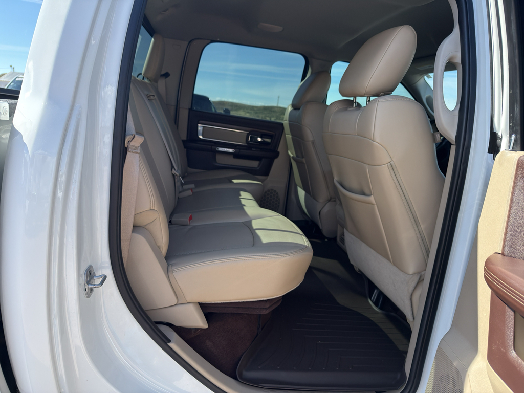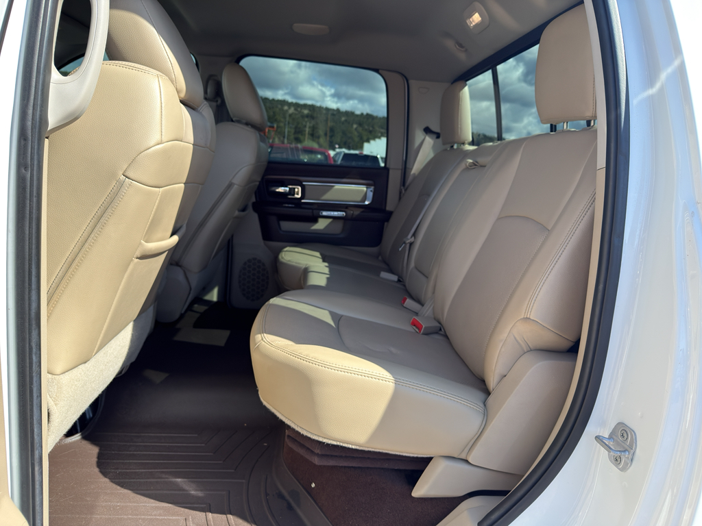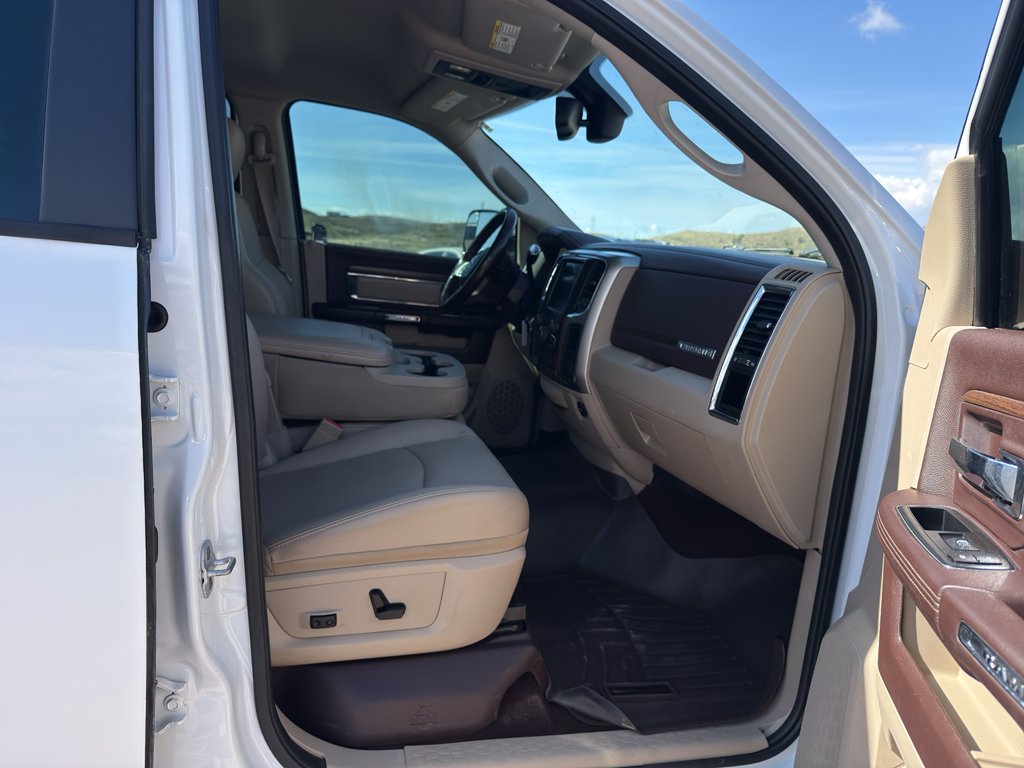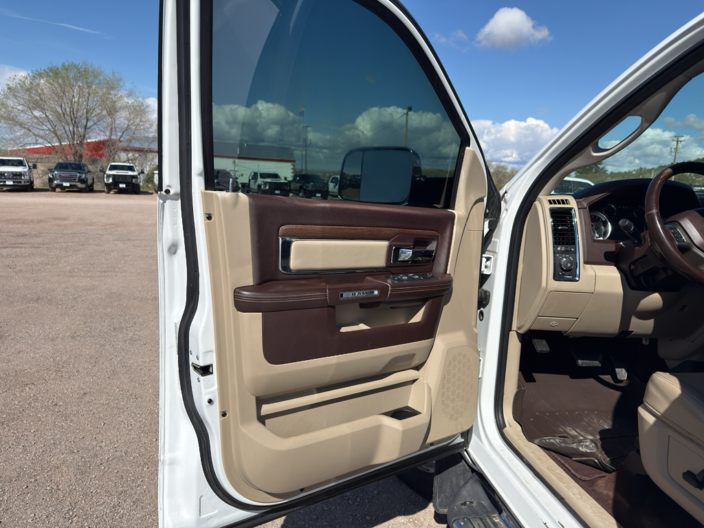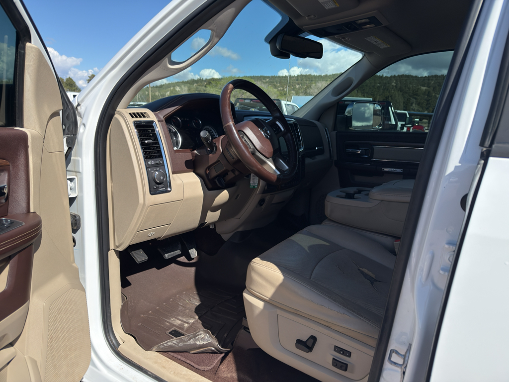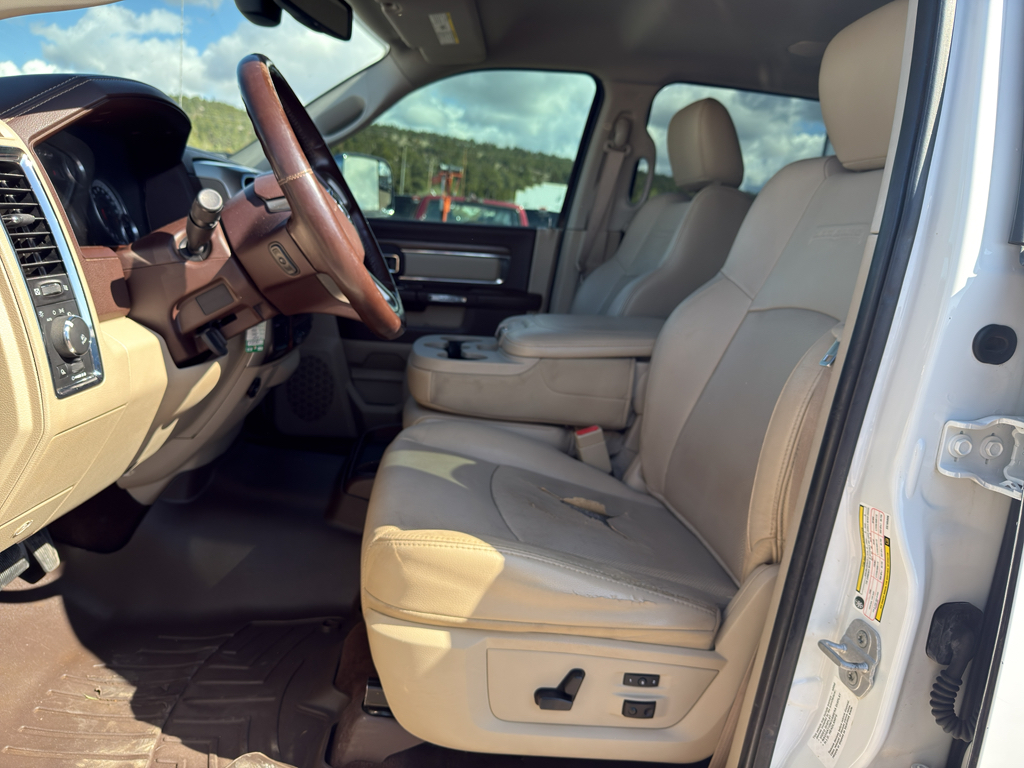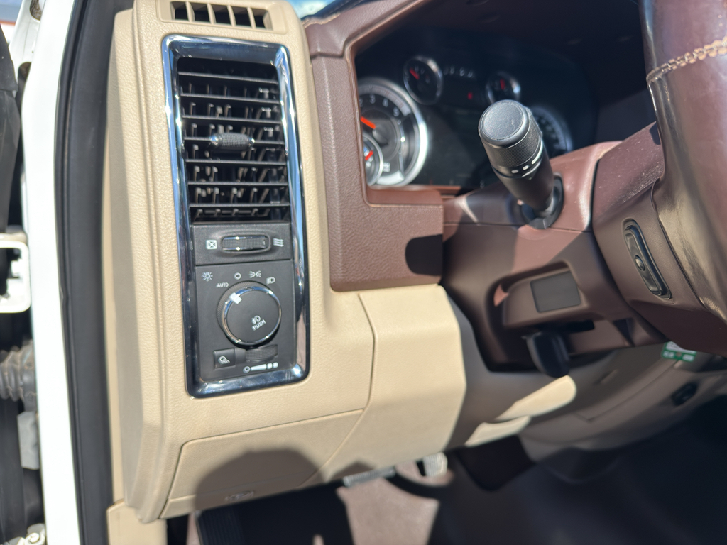 Equipment Never get into a cold vehicle again with the remote start feature on this Ram 3500. The rear parking assist technology on the vehicle will put you at ease when reversing. The system alerts you as you get closer to an obstruction. The Ram 3500 offers Automatic Climate Control for personalized comfort. The leather seats in this model are a must for buyers looking for comfort, durability, and style. Protect this 1 ton pickup from unwanted accidents with a cutting edge backup camera system. This vehicle is pure luxury with a heated steering wheel. This 2014 Ram 3500 features a hands-free Bluetooth phone system. Greater towing safety becomes standard with the installed trailer brake. It has a 6 Cyl, 6.7L high output engine. This 1 ton pickup embodies class and sophistication with its refined white exterior. Set the temperature exactly where you are most comfortable in the Ram 3500. The fan speed and temperature will automatically adjust to maintain your preferred zone climate.